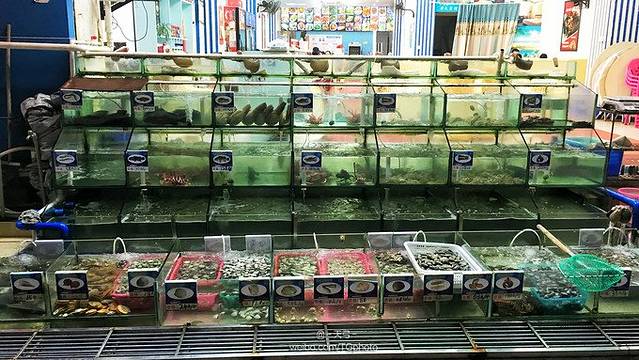 嗯!和浙江一样,海鲜都是放在装满海水的水槽里,以保证食材的新鲜。
