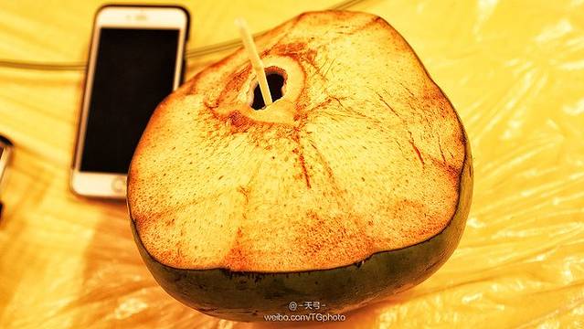 口感是成都买到的椰子不能比拟的,喝完汁水可以让老伴把叶子开开吃里面的椰肉。