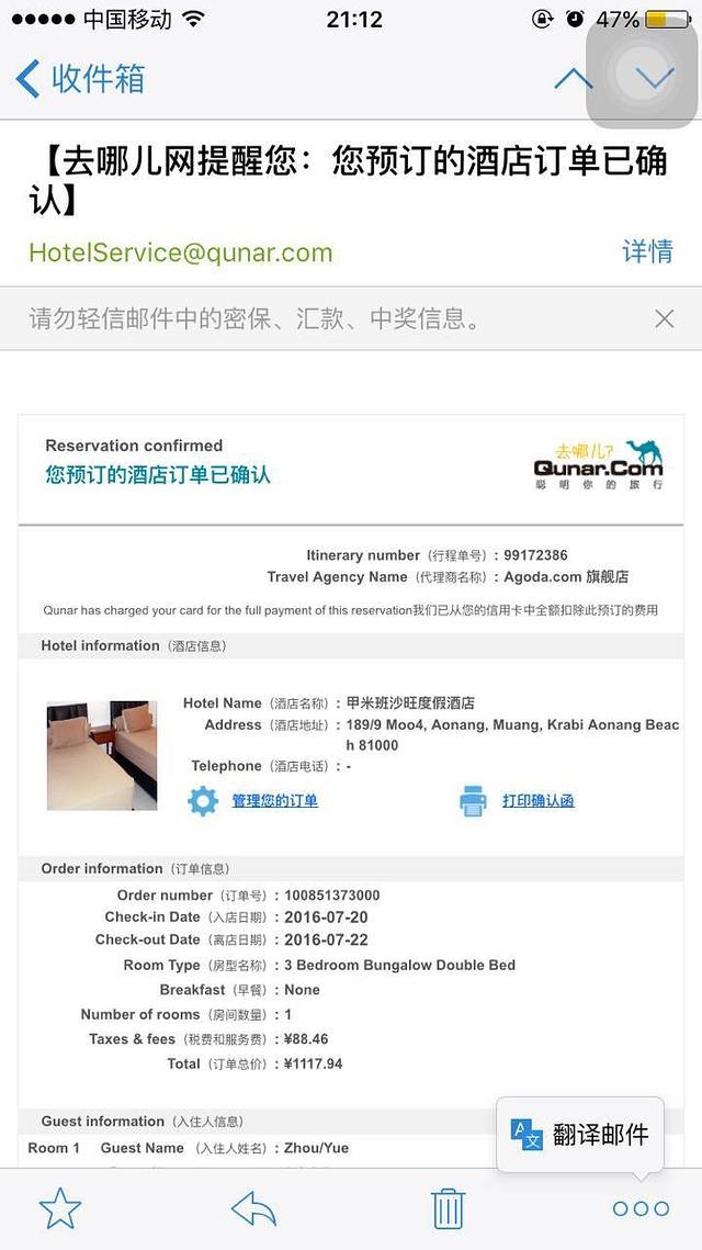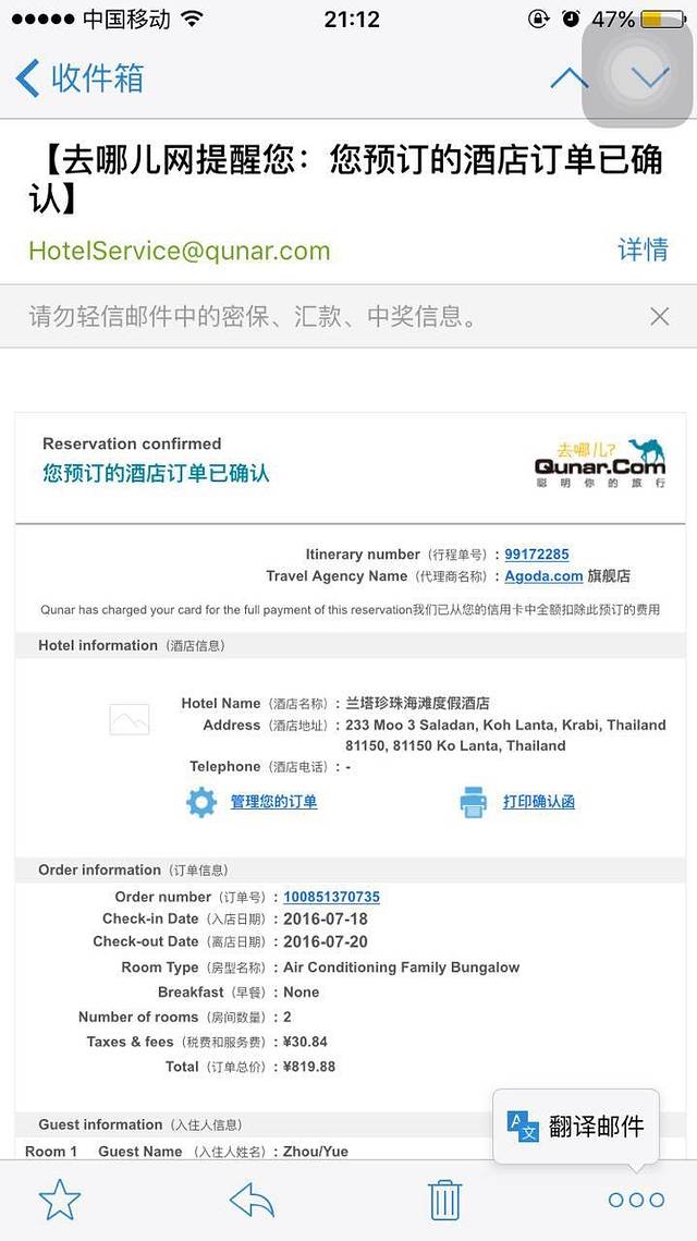 提前2个月订飞机票(去哪儿网预订,票价会随时变化)广州飞曼谷往返1587,曼谷飞甲米205,甲米飞清迈257,清迈飞曼谷156.5(一人花费)