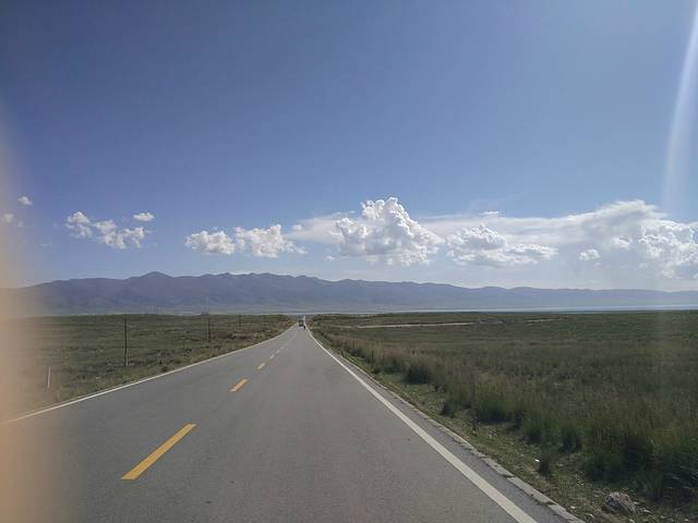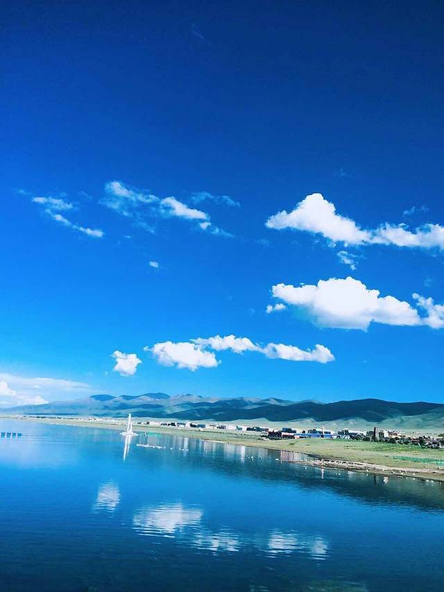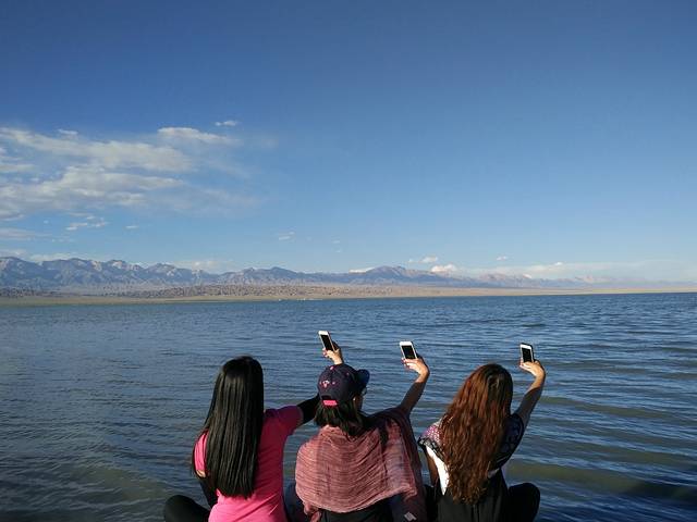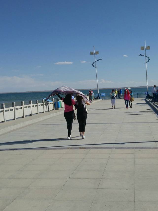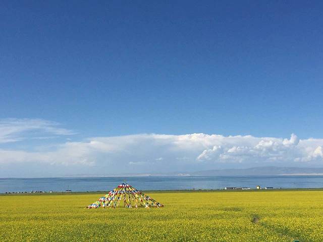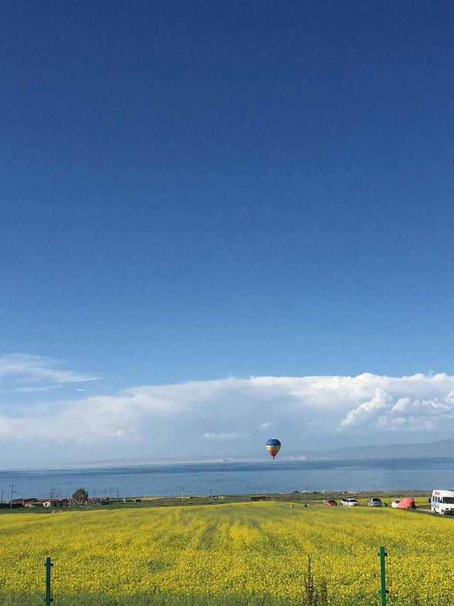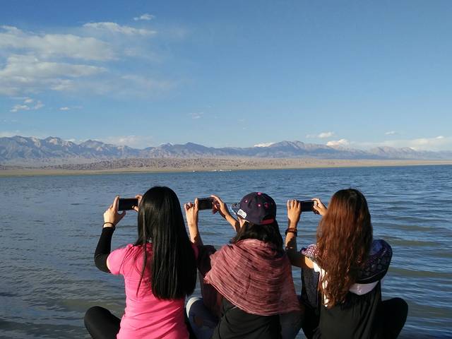 上午10点大家陆续醒来,旅舍放置了很多乐器,我和方大萌洗漱后的第一件事便是摆弄乐器,吉他和手鼓也在其中......同在旅店住宿的两位小姑娘也为我们展示了他们的音乐天赋,期间还受到了两位小朋友的嘲讽,这不是最主要的,重要的是其中一位小朋友话还说不明白!初到西宁,选择了稳妥的就餐地点——商业区,按照地图搜索万达,驱车到达后才发现还未开业,不过惊奇的发现这里的NIKE为NICE、阿迪达斯为阿丢达斯(为招商,山寨其他品牌),欢笑过后在新华联商场简单解决了午饭问题。第一天的行程为海南藏族自治州青海湖,因怕堵车,按照旅舍老板的建议我们去青海湖的路线为环湖东路、二郎剑。途中的东大水库给予我们一个小小的惊喜,在缴纳了4元巨资后为我们接下来茶卡盐湖“天空之境”的旅行做了小小的铺垫。进入环湖东路沿途遇到很多环湖骑行的人,烈日当头心生敬意!初见青海湖,惊讶于青海湖碧蓝的湖水、水天相接的美景,因为在内蒙古可以看到沙漠且当时已过了鸟类迁徙的季节,我们选择了青海湖南线的路程,放弃了北线的鸟岛、沙岛景区。青海湖边有很多藏民自己打开的保护栏供游人在湖边观景而收取费用的地方,沿途中多次差点没能忍住诱惑而进入牧民开辟的景点,在抵达二郎剑景区之际,发现路边很多油菜花田,碍于不能下车,所以纷纷进行拍照,碧水蓝天白云油菜花,青海湖最初的美景烙印此刻!驱车151公里进入青海湖二郎剑景区后更加直观的感受到青海湖水天相接的壮丽美景。青海湖,藏语名为“措温布”(意为“青色的海”),眼前的广阔、壮丽、水波荡漾,不虚此行!拍照之余坐在岸边静静的观赏着水天一色的美景,陷入无限遐想......
