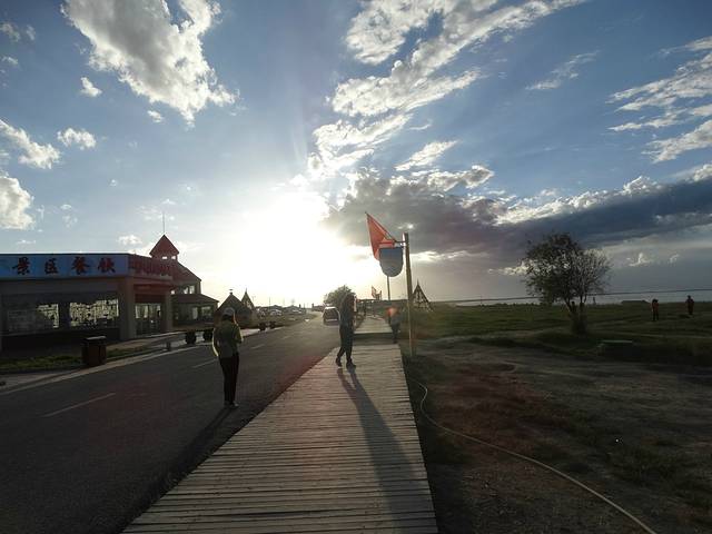 在湖边静逸的陪伴太阳下山,感受夕阳在云间透射出来的最后霞光。参观了青海民俗博物馆后我们驱车前往当晚留宿地——黑马河,黑马河的住宿在网上预订,提前给老板打过电话,老板总说的一句话是:你加我微信了吗!电话中可以听出老板是一位操着一口“青普”的藏民,因为老板微信中发来的定位打不开,我们按照网站的导航寻找名为“丝绸之路”的湖边客栈。可当我们驱车1个小时导航中传来一句:“目的地位于道路右侧”时,我们懵圈了!右侧是青海湖啊,期间不断给老板打电话询问具体位置,不管怎么老板形容位置就只有一句“你加我微信了吗”最为清晰。最后才搞清原来网站上的位置是老板原来的定位,后与网站商量更换新定位一直未果,可是亲爱的盖力格(以下简称盖盖)老板,你一直都没说过网站的定位是错的,只是一个劲说加微信,微信里又说给你打电话!晚间11点30达到目的地后惊讶的发现,原来我们从二郎剑到这只需20分钟,可我们从二郎剑到环湖西路来来回回足足多跑了3个小时,而这接近三个小时的往返跑中,熟睡的赵大脾气居然丝毫不知,就这样赵大脾气一觉醒来已隔一天。带着一肚子怨气我们进入了蒙古包客栈,当我们看到一脸憨憨的盖盖带着客人在篝火旁欢歌起舞时(其实只有他自己憨态可掬的翩翩起舞),又爱又恨啊!我们错过了当晚的篝火晚会。身着藏袍呆萌的盖盖为我们协调好原本定好的蒙古包后,我们躺在电热毯上潮湿的被褥进入了梦乡,伙伴们基本都穿上了厚实的衣物,我穿上了所带的全部半袖......