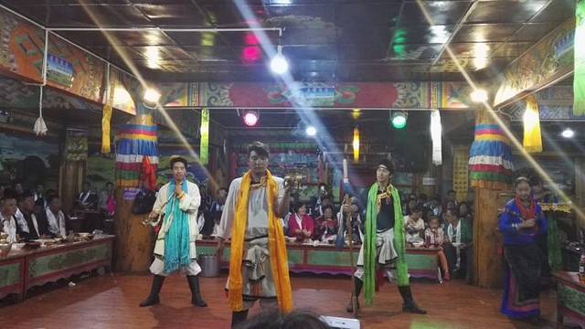 游玩完山谷雪山,导游安排我们晚上到当地的吐司家,看扎西跳舞,听卓玛唱歌,吃飞鸡牦牛,品青稞美酒……