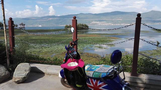 游完三塔,决定自己租辆电动车环游洱海,50元/辆。(已经下午四点,车的租费低了许多,一般都是80元/辆)