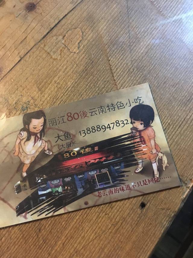 入住客栈后本打算跟着客栈吃饭的,一人30元,可是等到一点多还没开饭,实在等不了,我们还是到古城里吃,往南门方向走,到了一家叫“80后”的饭店(接下来多次光顾这家小店),吃了他们家的香肠(真心美味,料足),烤鸡蛋(份量偏小),打卤面(很香,就是口味偏重)还有蛋炒饭,好像是六十多块,不贵。
