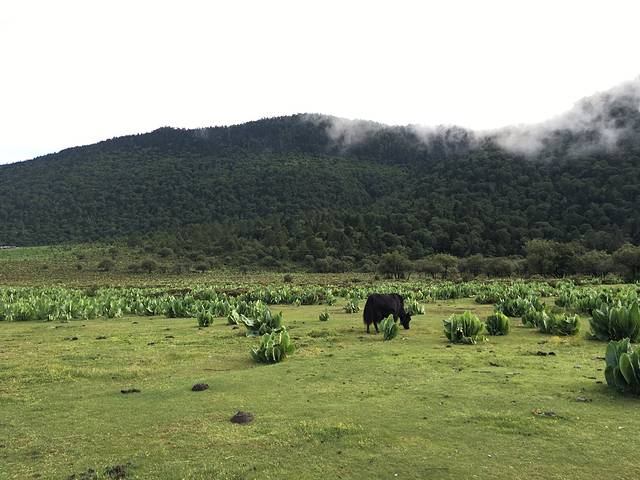 沿途欣赏着青山绿水,转眼就到石卡雪山了。换上防寒服,带上氧气瓶(有个别人上山会有高原反应,概率极小),排队坐着缆车上山了。缆车分成两段,第一段坐完来到半山腰,映入眼帘的是美丽的蓝月山谷。随处可见可爱的黑山猪,一群小猪跟着母猪,有趣极了……还有藏区特有的牦牛,藏民养的敖犬……远眺群山环绕,近看绿野无痕……