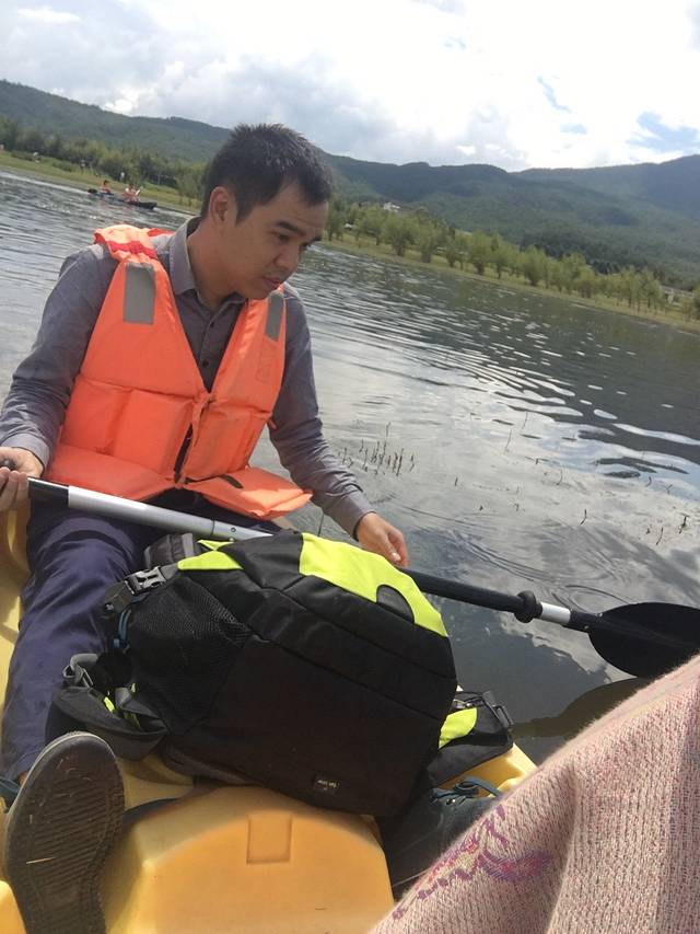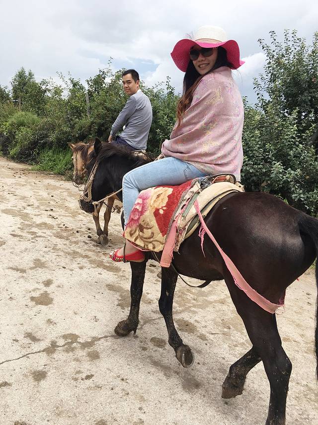 上了车才知道原来是要跟别人拼车,拼吃的,毕竟是免费接送的,也能理解。从古城到拉市海大概20分钟,先安排划船,两人一只,也可以选择坐大船,不用自己划。然后骑马,一人独自骑一匹,一个牵马的师傅跟着我们七个人。