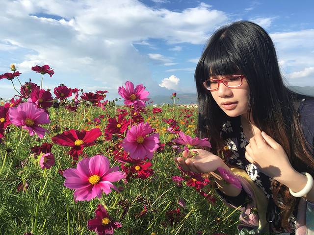 我们一路凭感觉随意驰骋,发现了路边很多供人拍照的花场,格桑花5元/人,太阳花10元/人。