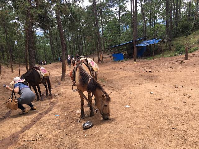 一路有给游客拍照的人,下山直接洗出来,一张叫价10元,讲价后10元两张。有卖马粮的人,一盘五元,就是一些玉米粒,价格贵了些,但看到马一路辛苦背我们上山,我们也买了。