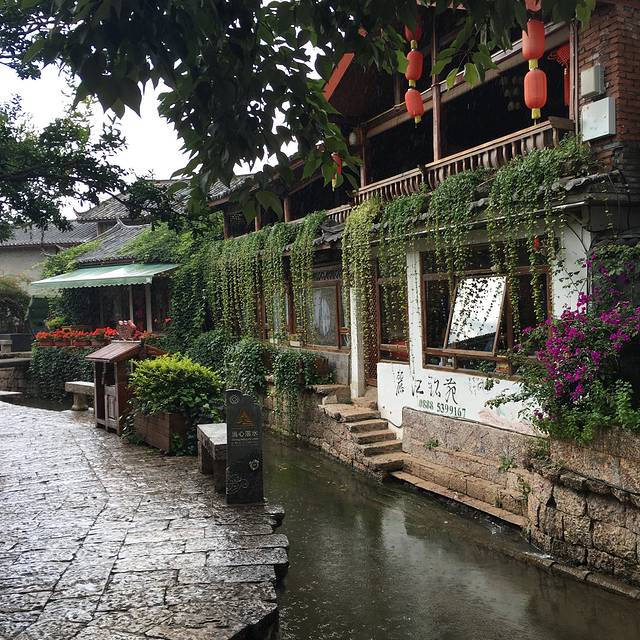 这天的天气比较糟糕,一直下雨,嘀嘀嗒嗒的牛毛小雨,天空黑压压一片,拍出来的照片也很一般,呈现不出古城的美。但是亲临丽江古城的美后,就没法再觉得其他古城美了。束河古镇,大理古城都是没法比的。)