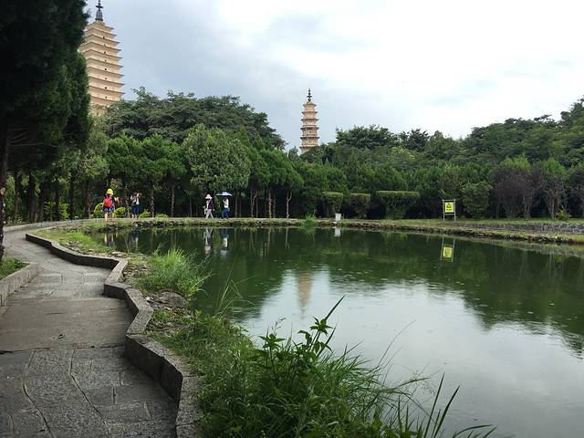 崇圣寺三塔还在80年代衍生出一个三塔倒影公园。公园占地27亩,有水面积达10多亩。公园坐北向南,背靠一公里许的崇圣寺三塔,以园内的潭水能非常清晰地倒映出三塔姿态而得名。