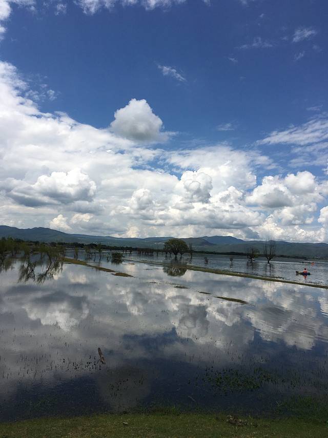 拉市海其实并不是一个海,只是一个湖,一个迷人的湖。湖面上,零星种着几颗树,不时游过几只鸭……在湖面划船是最惬意的,荡漾在湖面上的人儿不时嬉戏,深刻感受划船的乐趣,接受阳光的深度沐浴,过后体会肤色的变化……