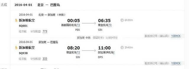本想看看亚航有没有什么特价机票,既没有特价机票又要转机吉隆坡,再到巴厘岛,想想就觉得心累。决定选择携程订票,一方面是便捷另一方面全程都乘坐新加坡航空(据说新航的服务是最好的,趁此机会刚好体验一番),最关键的是价格算下来与亚航差不多。