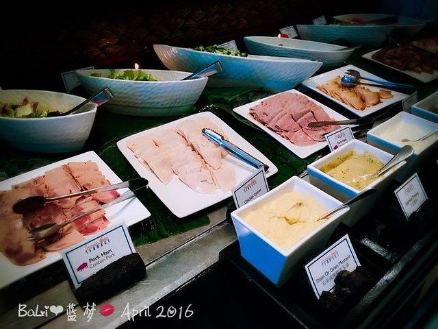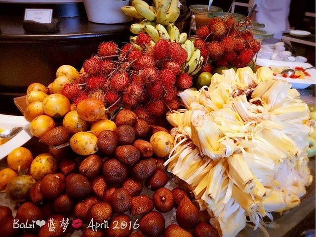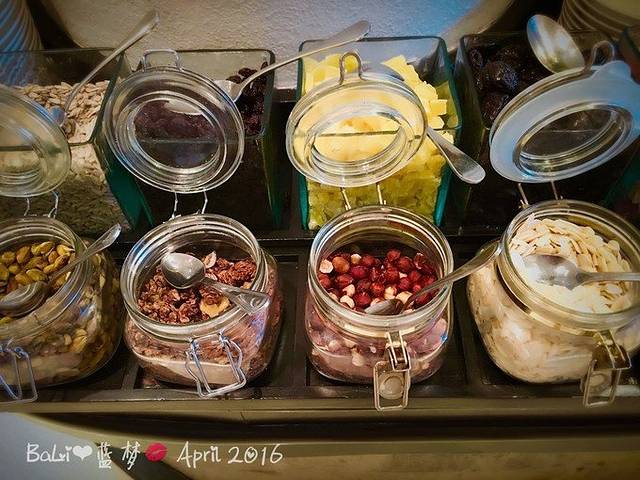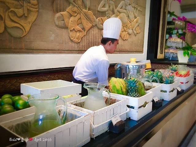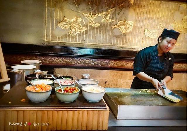 Taman Gita Terrace餐厅供应自助早餐。不是乱哄哄人很多的自助,有专门的菜单不限量的点。早餐特别丰盛。各式各样让人眼花缭乱目不暇接的美味佳肴。入住三天,所有都吃到了。每一道菜都有拍照的资本。尤其是点餐,即点即做,比国内的五星级自助更花心思。如果起得晚,就当作Brunch,这样中餐也省下来了。酒店还有日式料理、印度尼西亚菜、意大利菜和鲜美多汁的现捞海鲜。吃完晚餐,还有缤纷甜品,好吃得duang~duang~