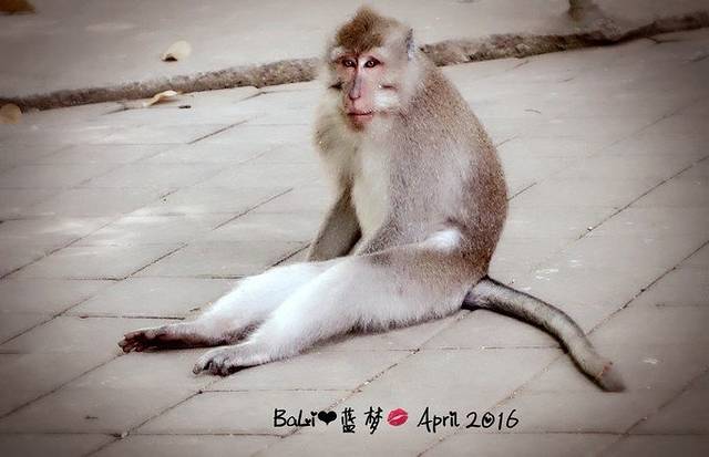 最惊险的事在这里发生了,我的墨镜被猴子抢走,吓死宝宝了。给训猴人20000Rp才拿回来。