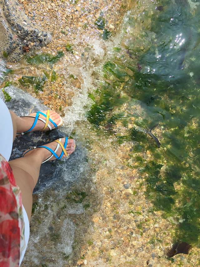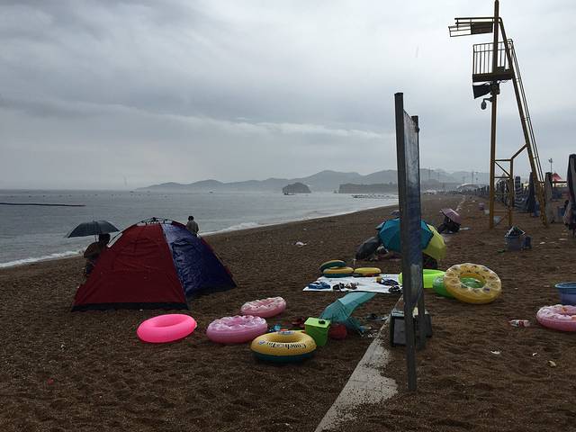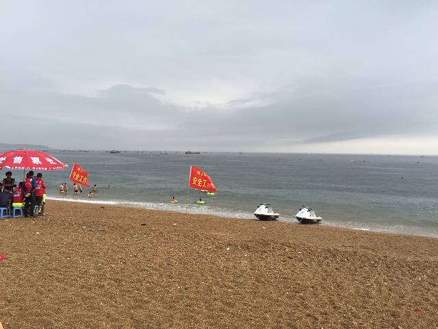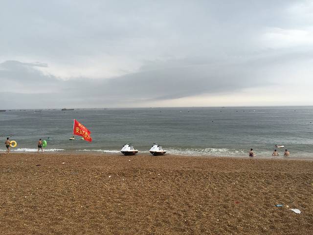 第二天我们坐轻轨来到金石滩,这里的沙滩都是石子,下水的时候非常硌脚,海水还算干净,由于海水有些凉所以游泳的人不多。