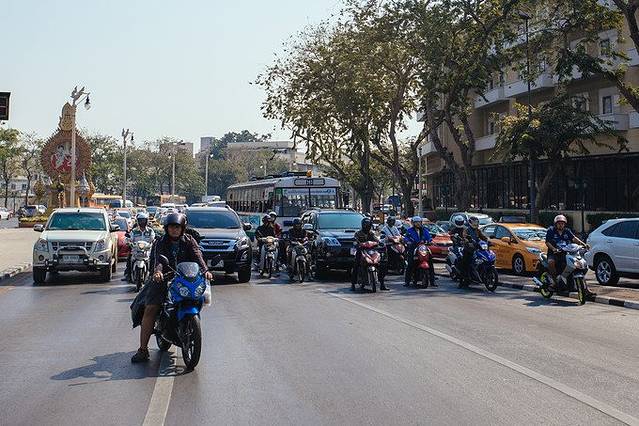泰国可以说是摩托车的天堂,摩托车在这里是拥有完整路权的交通工具,你走在汽车前面绝对不会听到不友好的鸣笛。