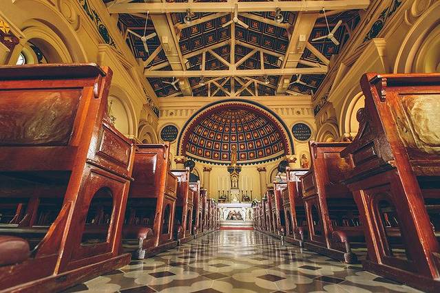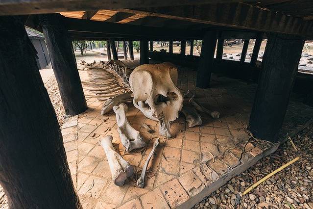 高高的屋顶,四周只有几扇窗户透进来光,其他的地方都漆黑一片。远古的猎杀工具,动物角做成的巨大座椅,木船上的魔鬼浮雕,巨大的蟒蛇皮标本,一件件艺术品把你带到身在地狱的感觉。