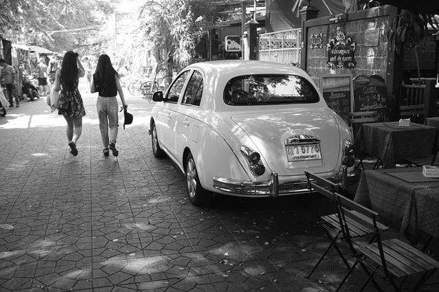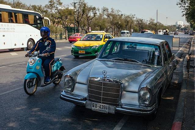 曼谷街头随处都可以见到古董老爷车,这里城市的节奏,你开这么一辆绝对可以气定神闲而且悠然散漫的往路边一停,而不会像出现在北京这种城市里,那形容词都不一样,北京得用“惊现”。