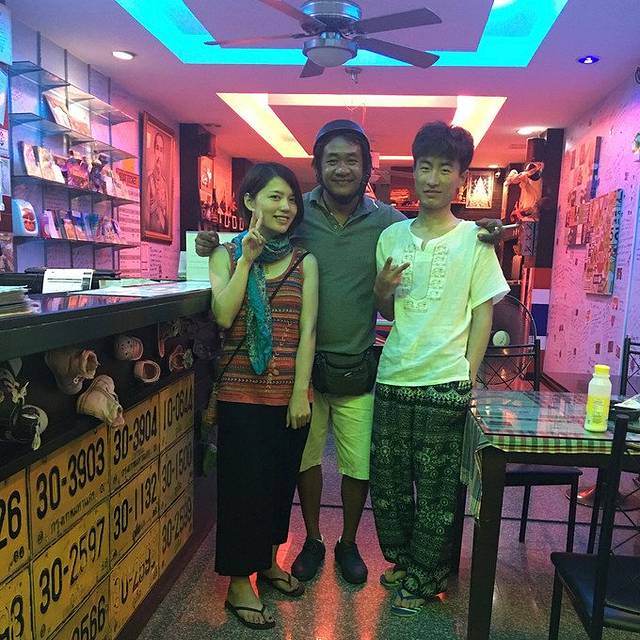 用不太流利的英语泰语手语和泰国人民相处的十分融洽。