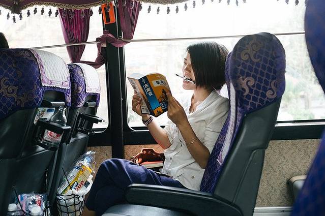 又是买了一大堆吃的来填补路上的空虚寂寞,老挝的行程一切都是未知,攻略没做,车上开始恶补的小伍。