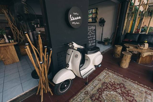 今天起的很晚,11点钟才下楼准备出发,没想到早上准备的早餐都还在,早餐当午餐,把肚子先填饱再说。让前台帮忙叫了一辆摩托车,不出意料,250株。 在车没到的时候,正好在后面的院子里走一圈消化下。