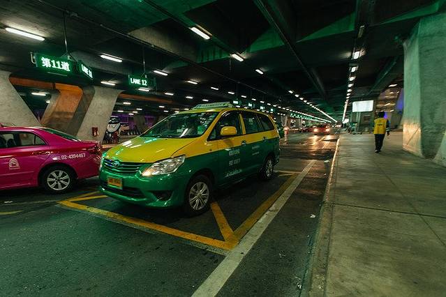 出机场一层的八号门可以打到正规出租车,你要先找工作人员领一张小票,司机才会拉你走,小票上工作人员会给你写上你要去的地址。