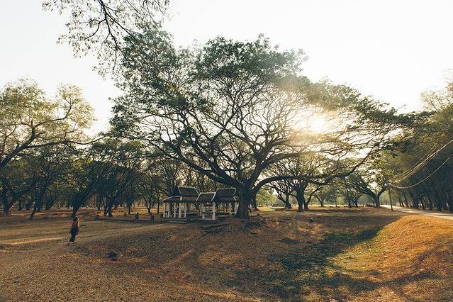 在里面稍作停留,看阳光穿过树叶的缝隙撒地面上。 休息到太阳落山,回去逛夜市。