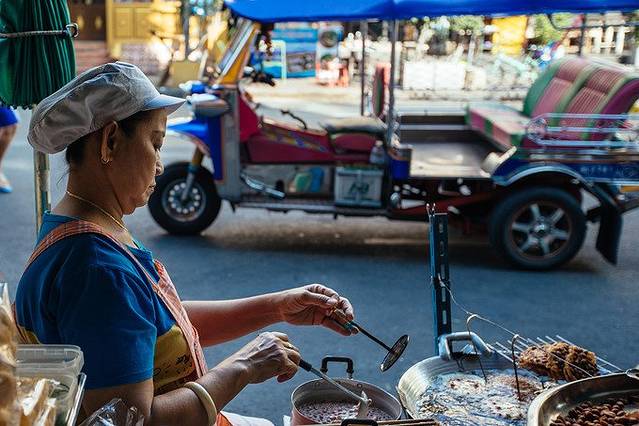 在考山路到大皇宫的路上有一段很长的街道上面有各种的小吃摊,所以就算没有吃早餐就出门,也可以在路上顺便解决。