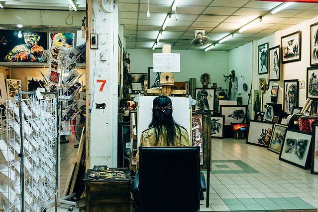 回程途中遇到了他们,几位皮具店的手工艺人。