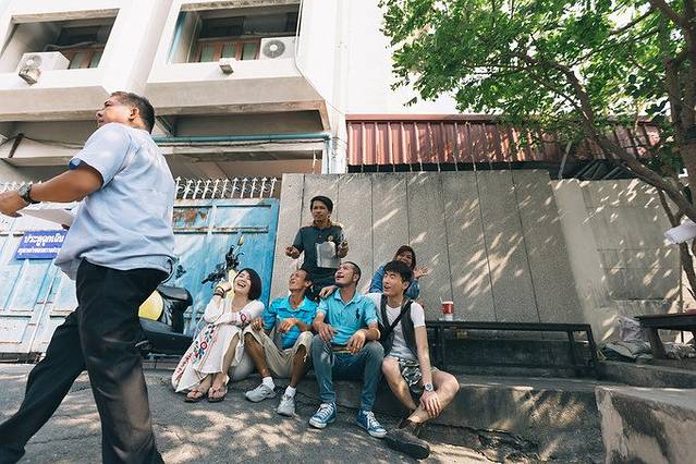 如果6点前你就来了,那有一点很有意思的是当泰国国歌6点整响起的时候,你可以目睹整条街的人都在站立不动,仿佛时间停止了,国歌结束时,一切又恢复正常了。