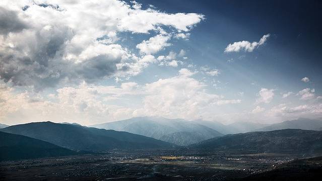 从攀枝花到丽江的路上,一个叫做粮官的地方,一片大平原,听这个地名就知道,这个地方一定是盛产粮食的地方。天气很好,云朵在山上形成投影缓缓的游离过山头。