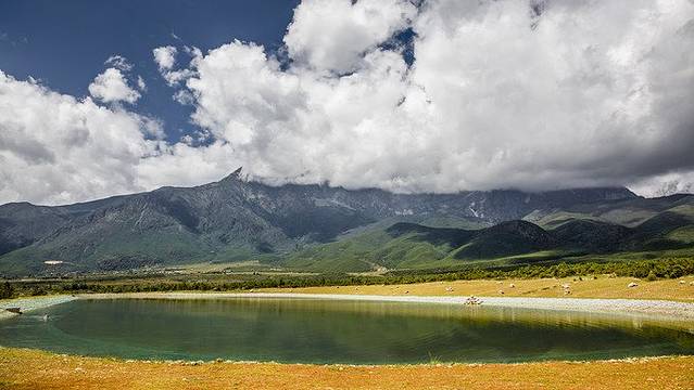 沿着公路继续往玉龙雪山方向前进,从路边的一条小路拐进去,在玉龙雪山的脚下的发现了这个清澈的小水塘。可惜这个季节看不见雪山,不然这里正好可以拍到玉龙雪山的倒影,还是挺漂亮的。