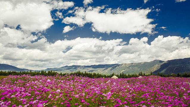 从玉龙雪山往回走的路边上,这才发现了真正的格桑花海,这个季节确实正是格桑花开的最漂亮得时候。