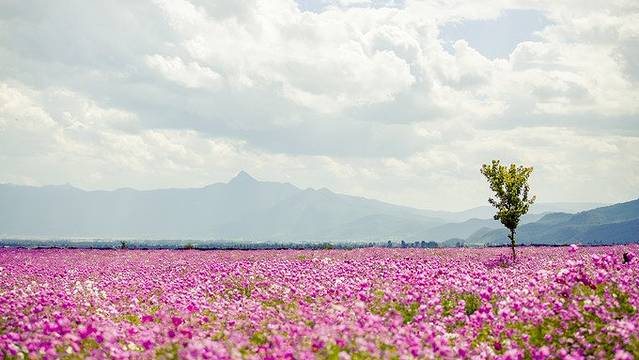我和鬼妹儿直接睡到日上三竿才起床。来的时候在微博上搜索到最近丽江的格桑花开得正是时候,而且玉龙雪山下面有一片格桑花海非常漂亮,于是我们觉得晃过去看看。