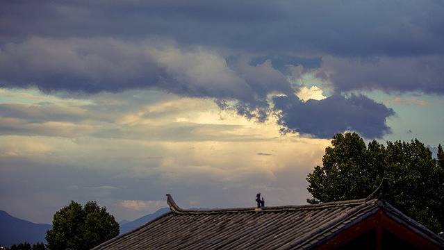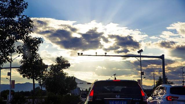 傍晚时分,终于到达了丽江,迎接我们的除了漂亮得火烧云以外,还有堵车的队伍。国庆期间丽江的车比平时多了很多倍,趁着大假出来玩儿的人还是相当的多。