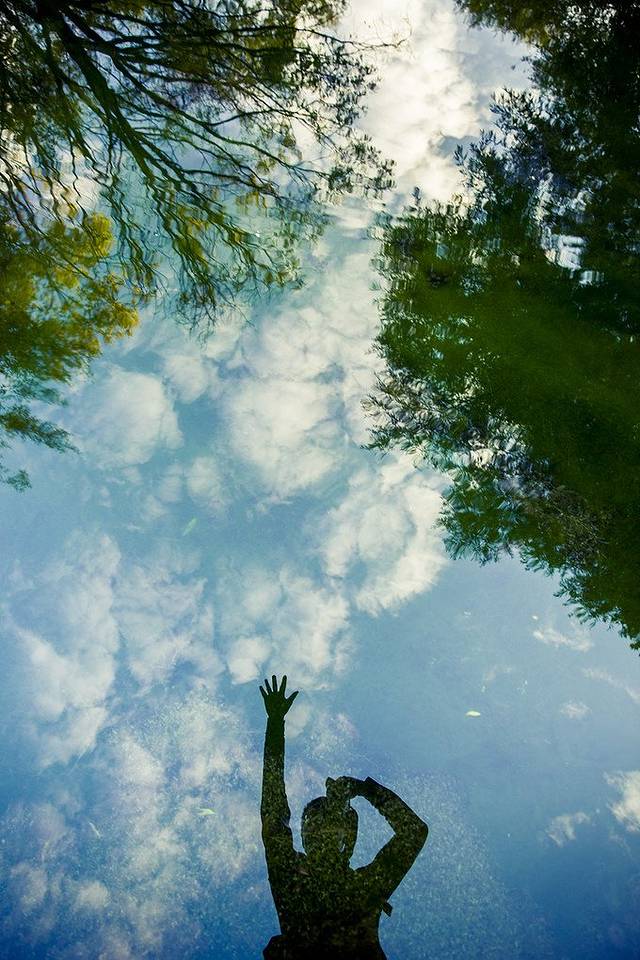 九鼎龙潭的水依然是那么的清澈。水面映着蓝天美丽的倒影