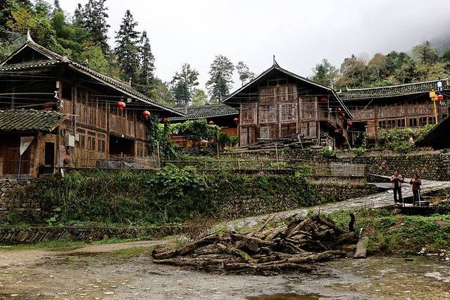 楼上古寨,位于石阡县城西南的廖贤河畔。从石阡县城出发不到一小时的车程。村民皆为侗族,至今仍保持着独特的民族风俗,如唱山歌、哭丧哭嫁、吹唢等习俗。