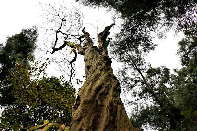 楼上村梓潼宫的哈哈树,这也是一株紫薇树,中国珍贵的环境保护植物。哈哈树也名副其实,因为只要轻轻一动它的树皮,它就会颤抖不止。这是因为这种的树干对振动十分敏感。紫薇树是千屈菜科落叶乔木,这株高达十几米,是我所见过的最为高大的了。
