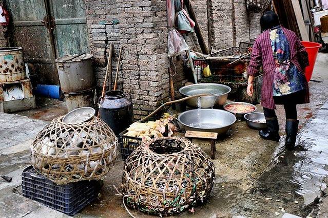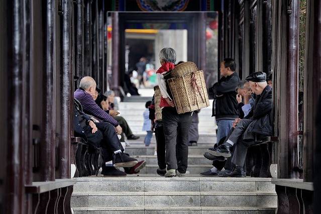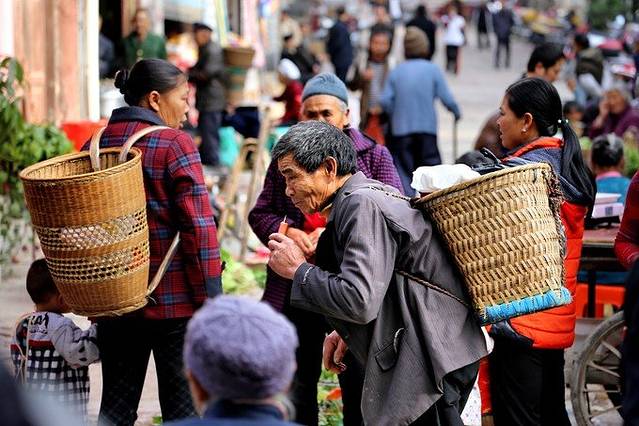 万寿宫古建筑群周边,充满着石阡县城人们的市井生活,背篓是这里的特色。