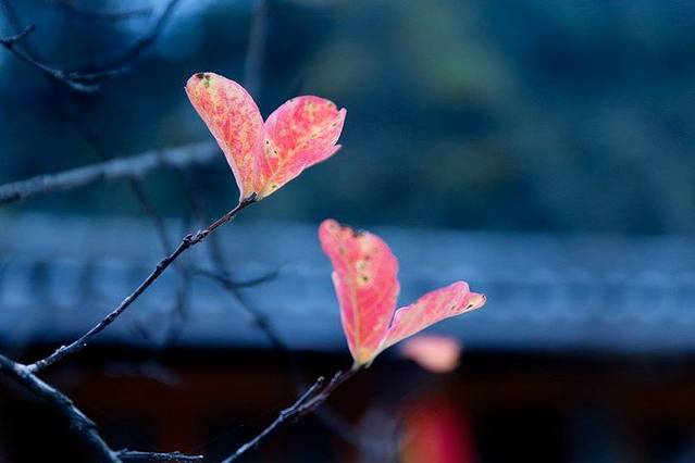 山野虽仍旧葱绿,但也不乏深秋初冬的味道。红色的紫薇树叶,轻诉着春去秋来,几番如梦。