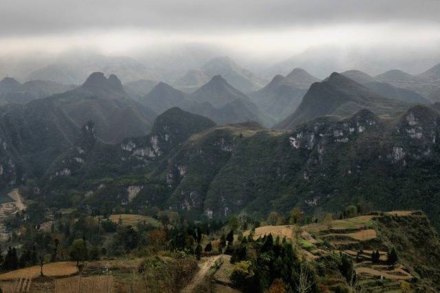 一路看着各种山头,天色渐暗,雾气渐浓,从贵阳龙洞堡机场到石阡县城,原本四小时的车程,大巴开了五个半小时。
