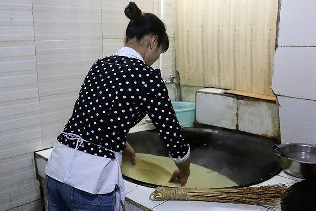 石阡绿豆粉,制作过程有些像摊煎饼。