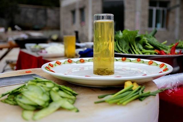 先从豆腐说起,众所周知“酸汤鱼”是贵州顶呱呱的美食,而石阡的豆腐,就是用腌酸菜的卤水点的。酸水豆腐,口感更加细腻。再说,做酱豆腐的必须作料“高度白酒”。贵州茅台,身为国酒,名扬天下。石阡同为酱香型的“大关酒”,我在石阡喝了好几次,感觉一点不比茅台差。石阡酱豆腐的其它辅料还有:辣椒、花椒、盐等。这里的食材不使用化肥和农药,也成就了这里的酱豆腐。
