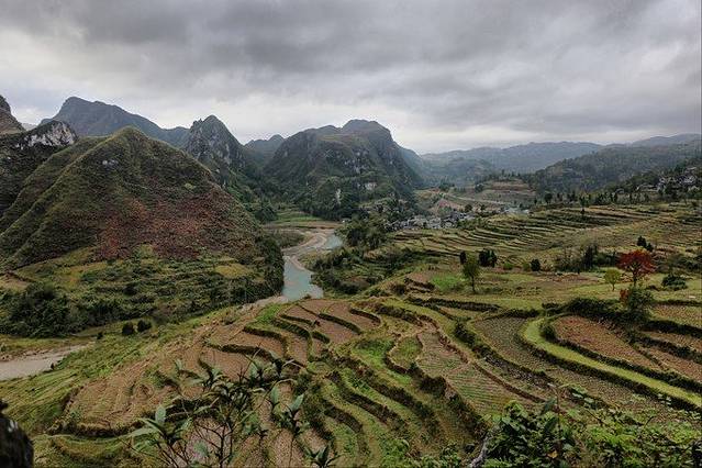 古寨的前面是一层层的梯田,一直延伸到廖贤河边。
