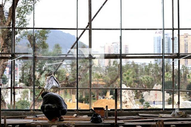 不太凑巧,蜀王宫正在修缮,暂不接受参观。但当我通过打开的宫门,看到四位师傅,面对他们要修缮的古建,那若有所思的深情时,这一幕瞬间就砰然触动了我的心。