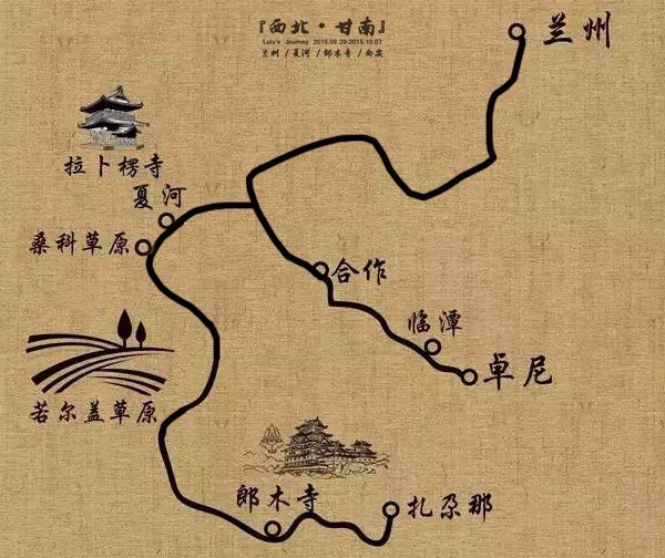 我们的行程从兰州出发,沿国道213依次抵达夏河「拉卜楞寺、桑科草原」——尕海——碌曲郎木寺「赛赤寺」,最后回到兰州。