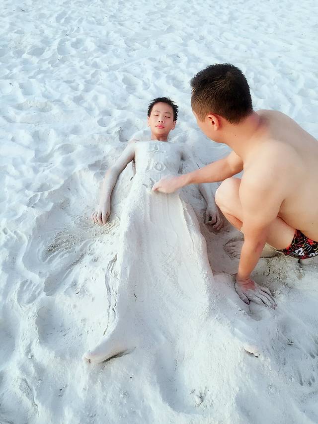 暑假陪小朋友出游,带我家小鲜肉去看海。
