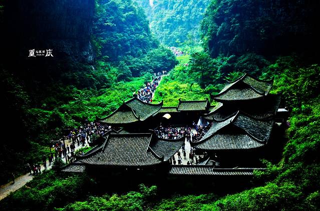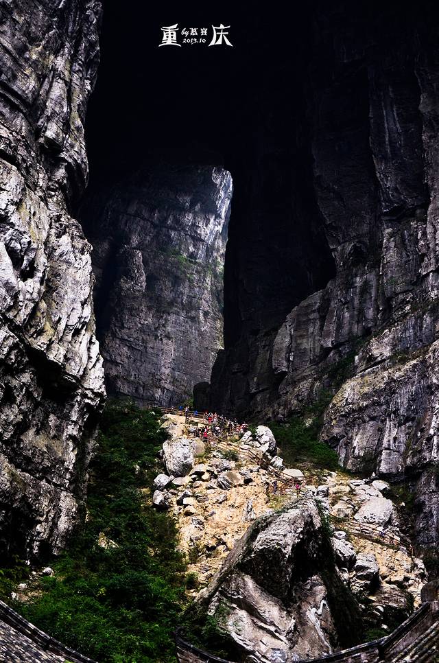 很遗憾,我的小伙伴倒下了,估计是昨晚的老火锅口味过重hold不住,上吐下泻的节奏。万幸的是还有力气坚持出发。今天去的是武隆最富盛名的地方——天生三桥。先要在车站买上去仙女镇的车票,到达仙女镇服务区,售门票的地方又是堆满了人,结果是买个门票排了2小时,想骂人了。。。还好有坐的地方给我的小伙伴休息。