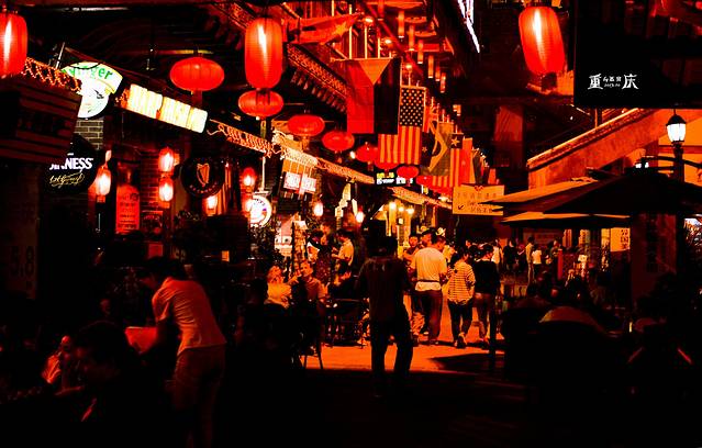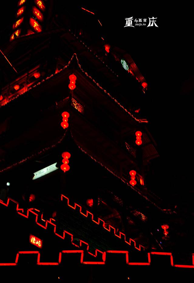 吃完给力的火锅,是要去看重庆的夜景,晚上的计划是去洪崖洞,从解放碑步行过去也很近。特别喜欢洪崖洞这个地方,依山傍水而建,里面是酒吧一条街,那种暧昧的色调,让人流连忘返。