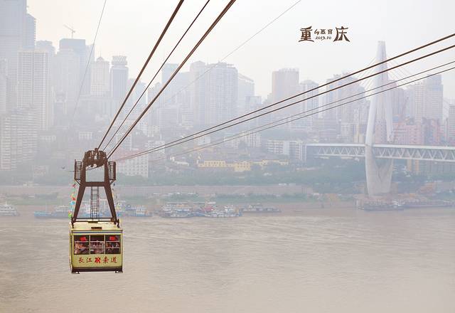逛完解放碑一带,原计划是要去南岸区的南山一棵树看重庆的夜景的,but,我们到达那的时候那里关着了,得晚上7点以后才开,可是晚上有更重要的景点洪崖洞,并且晚餐是准备好好吃一次正宗的重庆火锅的,不想在这浪费时间,我们又屁颠屁颠儿的从南岸区回渝中区。重庆打的不太容易打,而且发现重庆好多地方都是单行道,我们在南山打了的来到乘过江索道的地方,准备乘坐索道从南岸区“飞”到渝中区。过江索道是重庆人穿越嘉陵江来回于南岸与渝中之间常用的交通工具。
